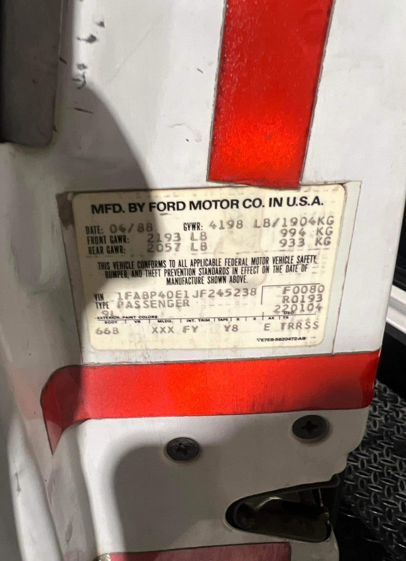 1988 SSP - VIN 1FABP40E1JF234238