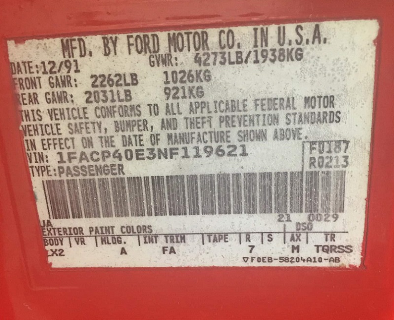 1992 SSP - VIN 1FACP40E3NF119621