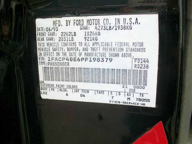 1993 SSP - VIN 1FACP40E6PF198379