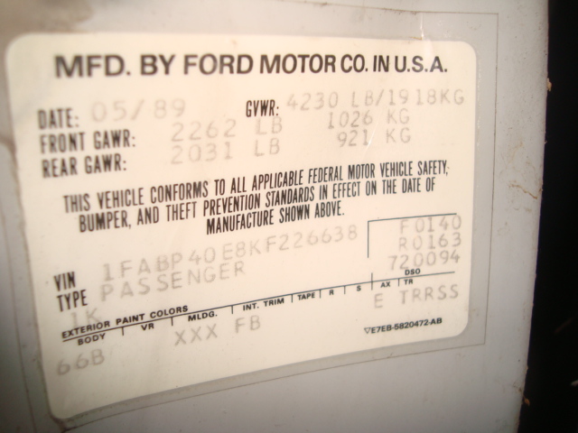 1989 SSP - VIN 1FABP40E8KF226638