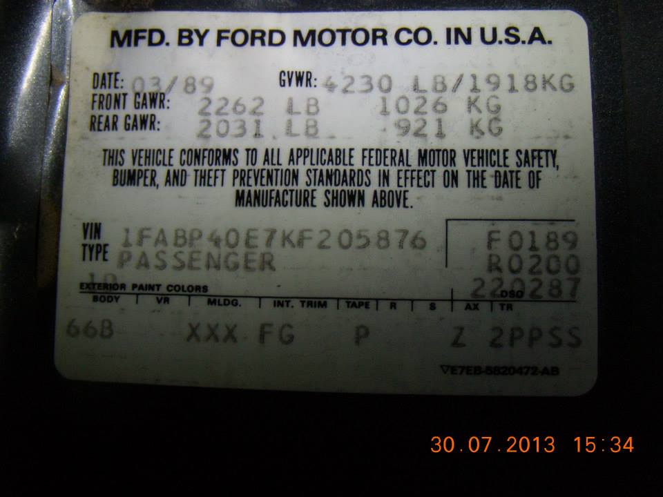1989 SSP - VIN 1FABP40E7KF205876