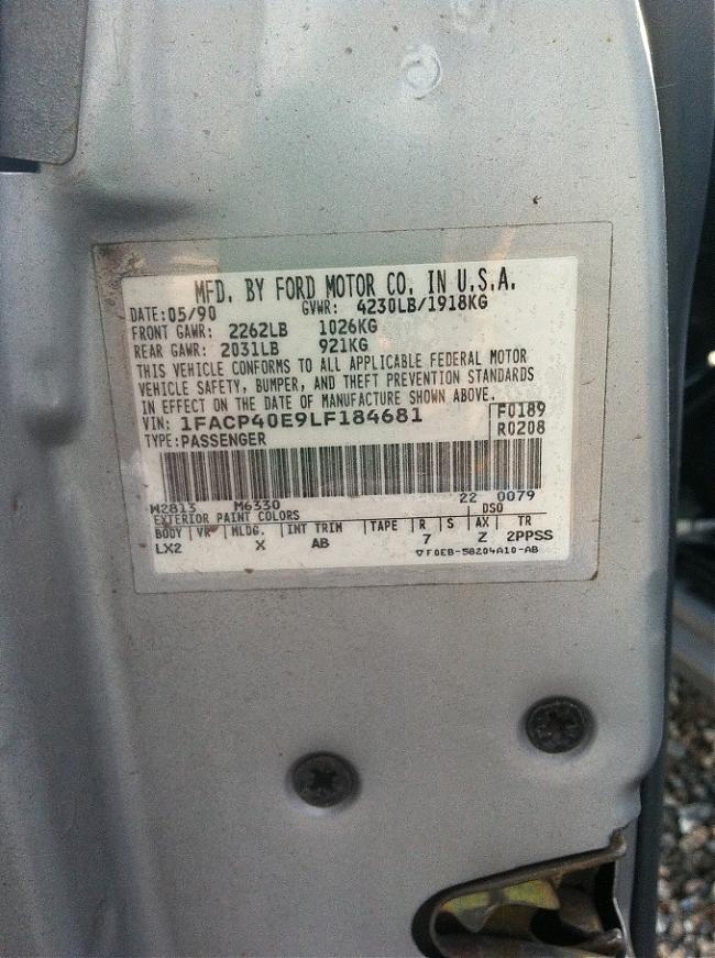 1990 SSP - VIN 1FACP40E9LF184681