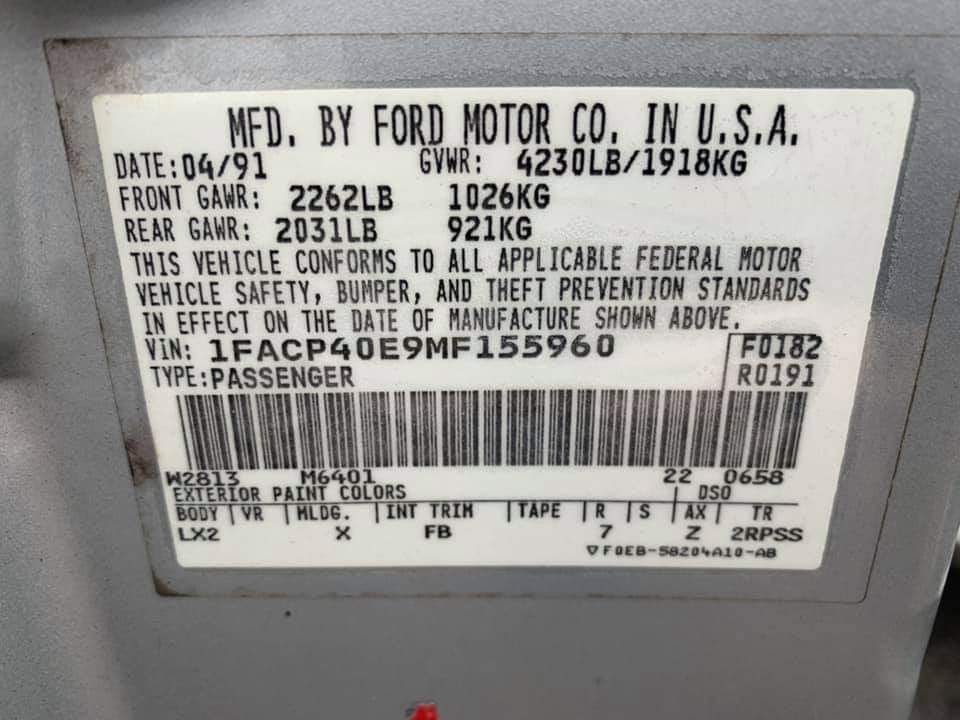 1991 SSP - VIN 1FACP40E9MF155960