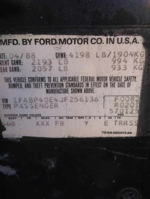 1988 SSP - VIN 1FABP40E4JF256136