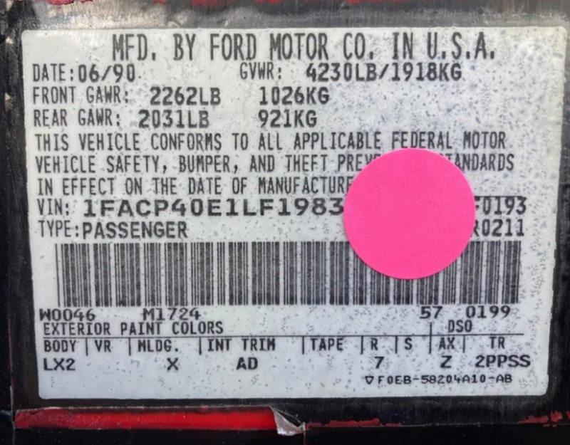 1990 - VIN 1FACP40E1LF198378