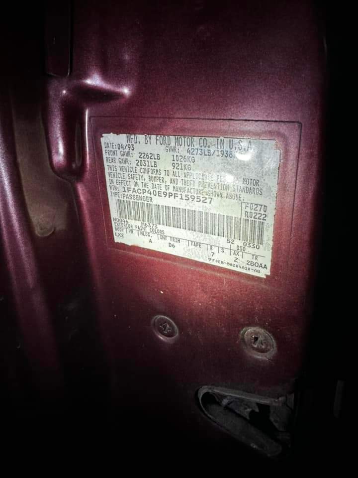 1993 SSP - VIN 1FACP40E9PF159527