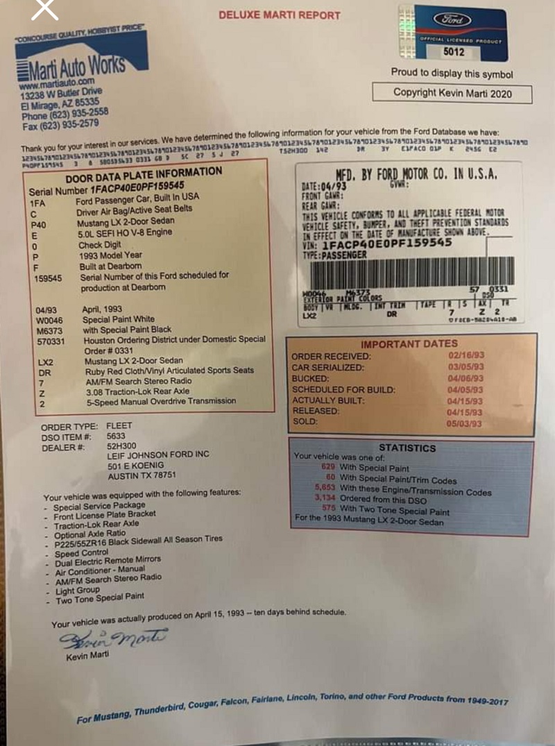 1993 SSP - VIN 1FACP40E0PF159545
