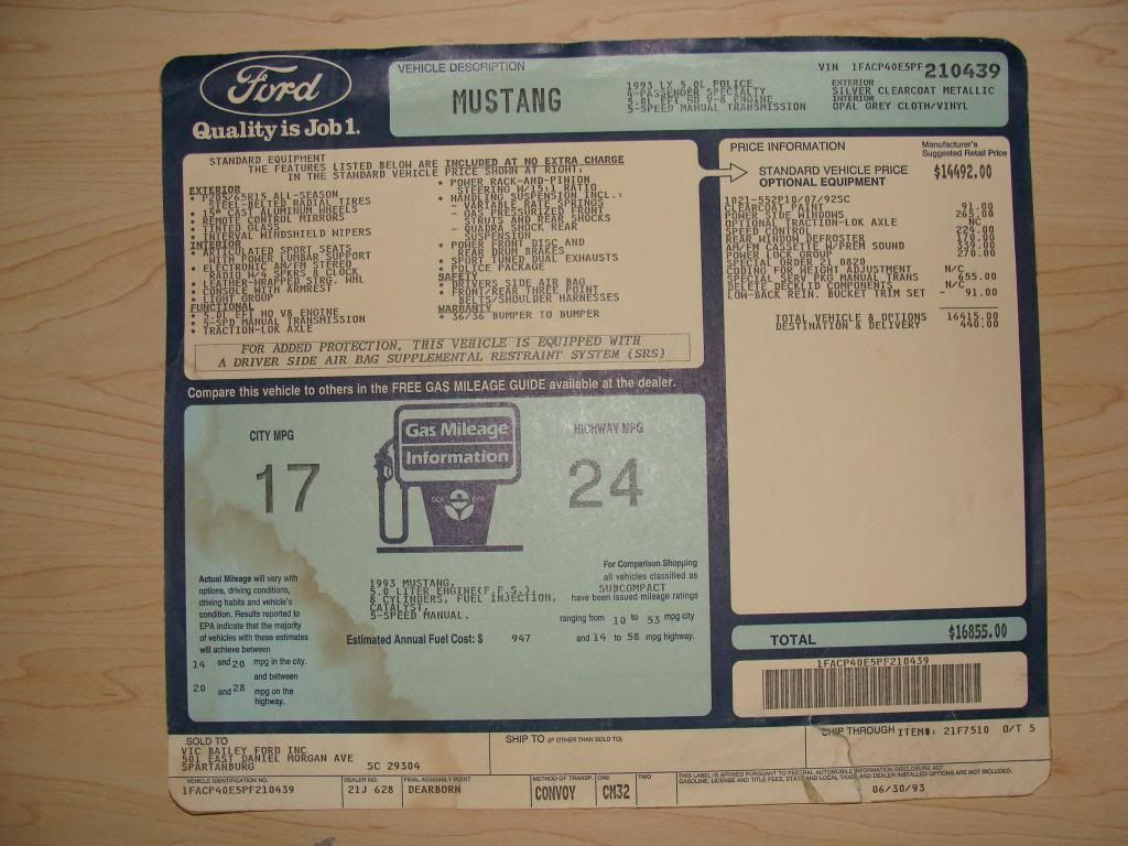 It looks like that is the total cost for the SSP option. I didn't recall seeing other window stickers that indicated the transmission type with the SSP option, but here's a 1993 from the same DSO that I found in our VIN Project with the same notation: